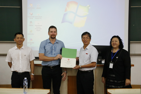 澳方带队教师Robert和学生代表Melanie对我校的周到安排、教师的精彩授课、志愿者的热情服务等表示感谢,并赠送礼品给我校志愿者。我校志愿者也分享了在本次交流项目中的学习收获。