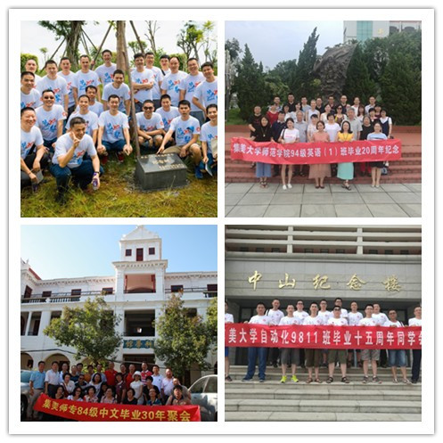 2017年暑期,中文84级、自动化98级、轮机943、英语94级、淡水养殖83级、电子03级、体育教育85级等近50批1300多名校友返校举行联谊活动,追忆往昔青春事,共叙集大校友情。
