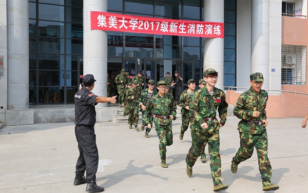 9月18日下午,我校举行2017级新生消防演练,以进一步增强新生消防安全意识,切实提升新生防火御火能力。校保卫处、学生处、医疗中心,各学院相关人员及集美孙坂消防中队、军训承训官兵、丹田物业等参加演练活动。