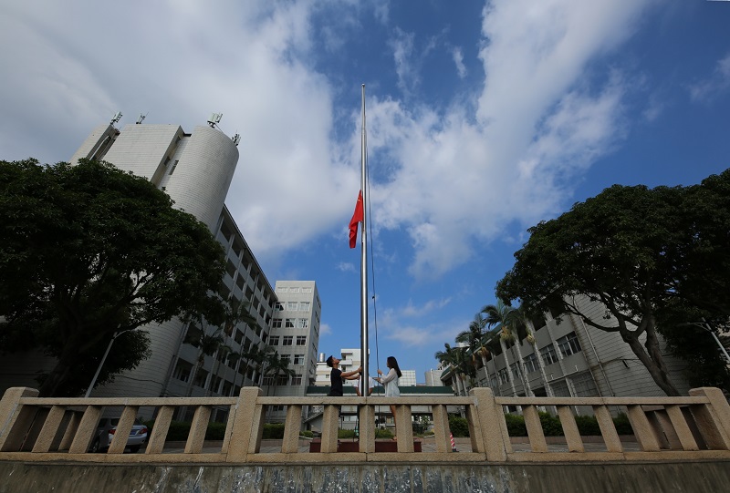 轮机工程学院、财经学院、食品与生物工程学院的同学们也来到各自院区升旗仪式现场,国庆日的朝阳下,五星红旗在师生们的注目下冉冉升起,迎风飘扬。