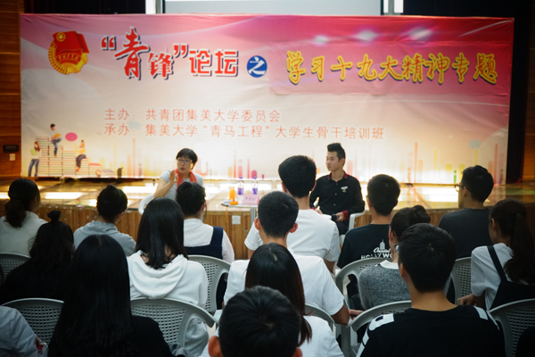 11月2日下午,我校在月明楼多功能厅举办“青锋论坛”之十九大精神专题学习活动。本次活动邀请了马克思主义学院李晋玲教授作为嘉宾,校“青马工程”第六期大学生骨干培训班学员、校习近平治国理政思想读书社成员和校团委老师一起参加了学习活动。