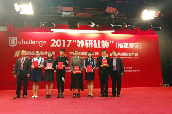 11月4日至5日,2017年“外研社杯”全国英语演讲、写作、阅读大赛(福建赛区复赛)在福建工程学院举行。经过激烈角逐,我校工商管理学院学生陈尧获得阅读比赛特等奖第一名,将于今年12月赴京参加全国总决赛;财经学院学生张竣博、外国语学院学生林臻分别获得阅读比赛一、二等奖;陈尧、文学院学生姚璐雅和外国语学院学生张潮清获得写作比赛二等奖;外国语学院学生李小梅获得演讲比赛二等奖。