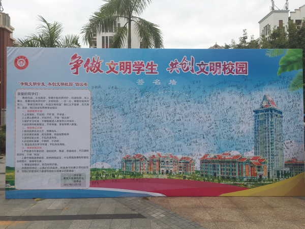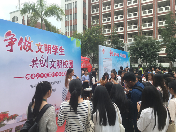 11月8日,我校在新校区万人餐厅门口广场举行“争做文明学生,共创文明校园”主题教育宣传活动。
