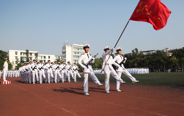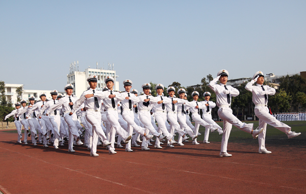 参加军事会操的同学们精神饱满,意气风发,进行了分列式和军事科目表演,充分展示了我校航海类专业学生的风采和半军事化管理所取得的成效,赢得了全场师生的热烈掌声。航海学院第二、三方队,轮机工程学院第一、四方队,诚毅学院方队获分列式优秀奖;航海学院护旗方队、捕俘拳表演方队获特别贡献奖。