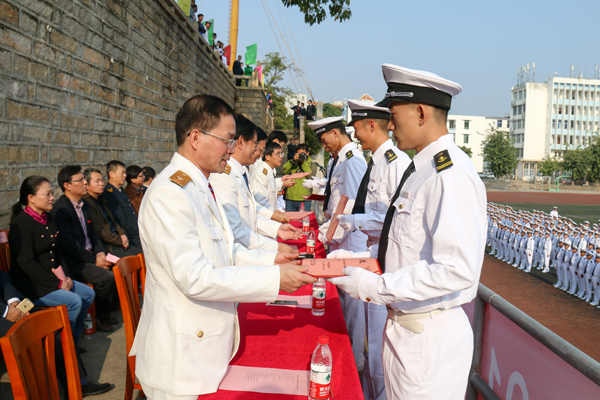 郑志谦代表学校党政领导向同学们取得的良好训练成果表示祝贺。他要求同学们要进一步增强自信心和荣誉感,以激昂的姿态投入到学习和生活中;要进一步增强责任心和使命感,担当起时代赋予的责任和使命,为建设中国特色海洋强国贡献自己的力量;要进一步增强进取心和紧迫感,励志勤学、刻苦磨炼,提高自身的专业能力和综合素质,增强为国家建设、为人民服务的本领。他指出,今年是学校深入实施“十三五”规划的重要一年,让我们以更加积极的姿态、更加扎实的作风,认真学习贯彻党的十九大精神,潜心探索航海人才培养的新思路、新模式,齐心协力推动我校航海教育的新发展。