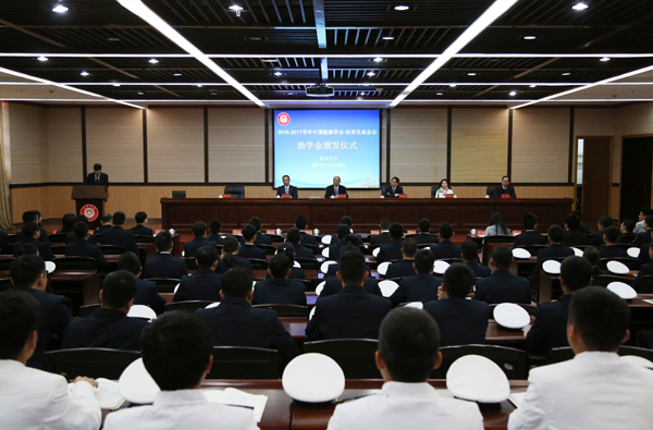 钟德美介绍了张荣发及基金会的基本情况,鼓励学生要乐观勤奋、早日成才。丁平生宣读了2016-2017学年“中国航海学会—张荣发助学金”获得者名单,徐祖远和林沛樵为受助学生颁发助学金,我校助学金获得者代表作了发言。