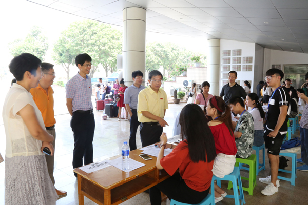 领导关怀,贴心指导。校长李清彪及相关职能部门负责人来到新生报到场地,慰问现场工作人员、志愿者,了解新生报到情况,与新生和家长亲切交谈,为新生送来了暖心的关怀与呵护。李清彪强调,要提高服务水平,坚持数字迎新,做到服务前移,让数据多跑路,新生少跑腿,切实让新生进入校园就感受到家的温暖;要落实好经济困难学生的入学绿色通道工作,精准资助育人,确保困难学生安心无忧入学。