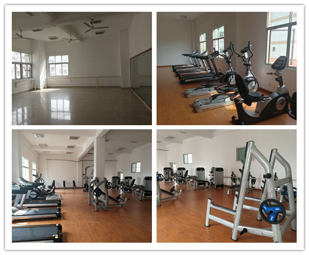 (财经学院古龙大礼堂一楼、水院第九餐厅四楼、光前体育馆地下新增加健身房。健身器材均为校友捐赠。)