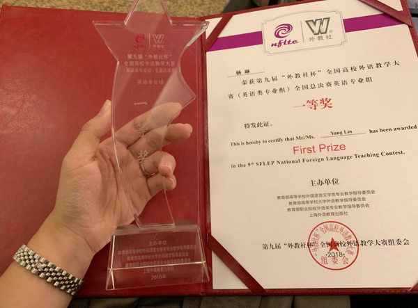 我校教师获第九届“外教社杯”全国高校外语教学大赛一等奖