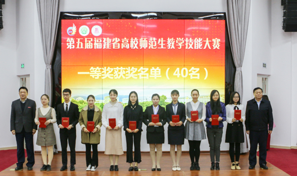 福建省高校师范生教学技能大赛,由福建省教育厅主办,是针对全省高校应届师范类毕业生设置的学科竞赛,分初赛和总决赛两个阶段。总决赛中,来自全省21所高校的183位学生参加了学前教育、小学语文、数学和初中语文、数学、英语、道德与法治、物理、化学、生物、历史、地理等13个组的比拼,通过教学设计、模拟课堂教学、专家问答等三个环节的角逐,最终评出一等奖40名、二等奖54名、三等奖60名。