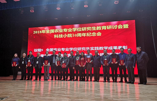 为贯彻落实教育部《关于加强专业学位研究生案例教学和联合培养基地建设的意见》,总结和推广各高校农业专业学位研究生实践教学成果,促进产学结合,提升农业硕士实践能力,教指委于2018 年启动了第一批全国农业专业学位研究生实践教学成果奖评选工作。根据评选办法,经各领域专家初审、质量与监督检查工作委员会专家会议评审、教指委委员表决及公示等程序,共评选出获奖成果21项。日前,我校食品与生物工程学院有关领导还代表学校参加了在中国农业大学召开的2018年全国农业专业学位研究生教育研讨会暨科技小院10周年纪念会,并领取了该奖项。