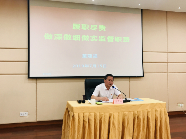 校党委常委、纪委书记童建福作开班动员和专题辅导报告。童建福指出,举办本次培训班就是为进一步增强学校纪检监察干部认真学习贯彻习近平新时代中国特色社会主义思想的自觉性和坚定性;尤其是自觉用习近平全面从严治党思想武装头脑,提高政治站位,树牢“四个意识”,坚定“四个自信”,坚决做到“两个维护”,不断提升思想理论水平和工作能力。他强调,这次选择在古田举办培训班,是希望纪检监察干部传承红色基因,弘扬古田会议精神,不忘初心,牢记使命,高质量做好纪检监察工作,为学校冲刺“双一流”大学提供坚强的政治保证。