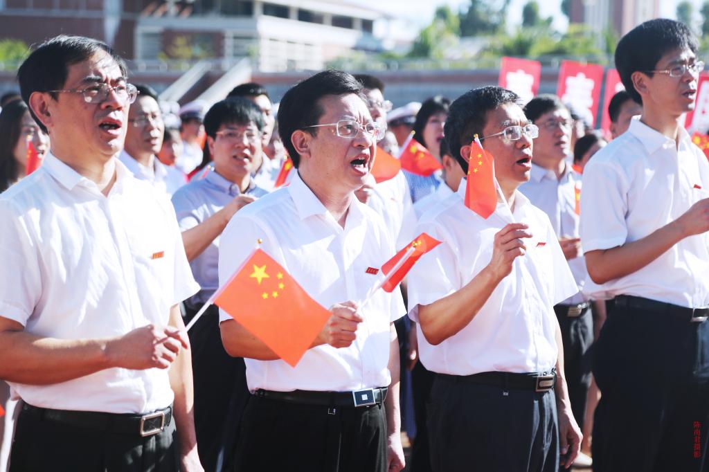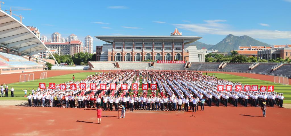 青春逢盛世,奋斗正当时。新时代必将是大有可为的时代,在国庆日举行升旗仪式,是一次深刻的爱国主义教育,将激励我校师生不忘初心,牢记使命,在今后的工作中以更加饱满的爱国情怀砥砺强国之志、实践报国之行,以“嘉庚精神立校,诚毅品格树人”,立足本职岗位作贡献,把爱国热情转化为建设“双一流”大学的实际行动,为中华民族伟大复兴的中国梦、为服务地方高质量发展作出我们最大的贡献!
