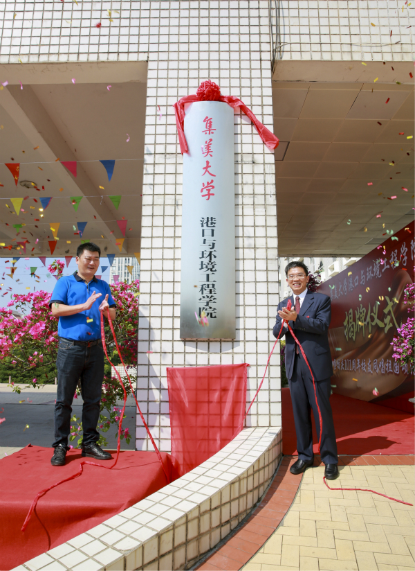 10月19日上午,我校港口与环境工程学院揭牌仪式在集诚楼一楼门厅举行。校长李清彪、副校长于洪亮,厦门远烨集团董事长詹毅鹏、厦门思总建设有限公司副总经理翁璇等领导嘉宾,我校相关部处、学院领导、学院班子成员,在原工程技术学院(含原工业学校)工作过的领导、老师,校友、师生代表参加了揭牌仪式。