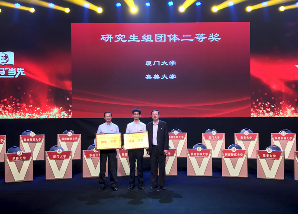 11月11日,由中共福建省委教育工委主办,福建省高校思想政治理论课教学指导委员会和福建教育电视台承办的第四季福建省高校大学生学习马克思主义理论“一‘马’当先”知识竞赛总决赛在福州举行,省委常委周联清出席并观看了比赛。我校获研究生组团体二等奖,2019级马克思主义中国化研究专业研究生张永杰获研究生组个人二等奖。