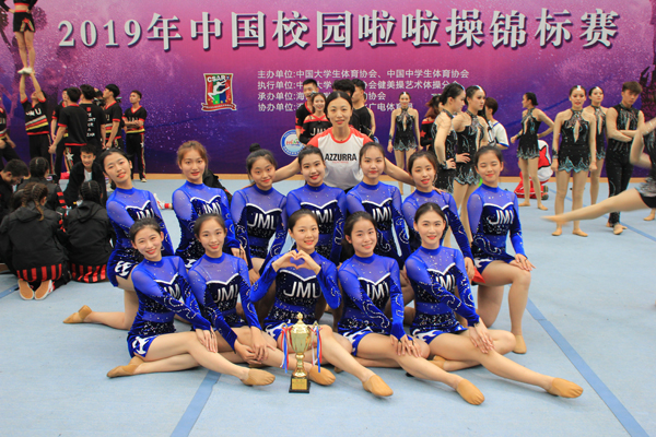 12月19日-21日,2019年中国校园啦啦操锦标赛在海南省澄迈县举行。经过激烈角逐,由我校音乐学院、师范学院、轮机工程学院、法学院、工商管理学院、计算机工程学院、外国语学院、航海学院、机械与能源工程等9个学院学生组成的两支代表队获普通院校组爵士规定动作、集体自选啦啦操、混合技巧啦啦操三项冠军。