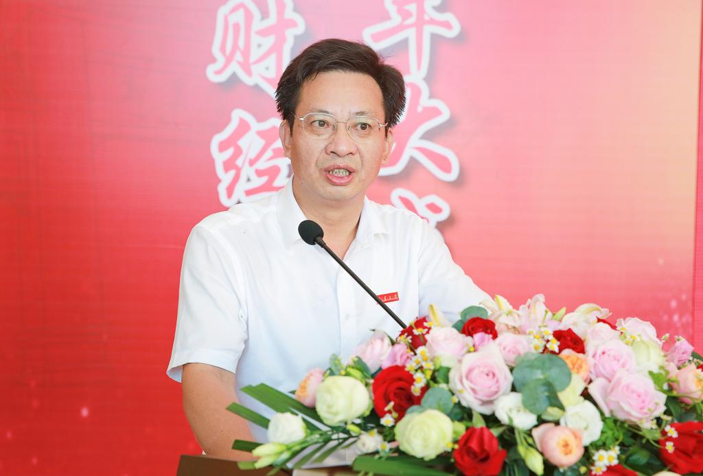 厦门建潘集团董事长、厦门金牌厨柜股份有限公司董事长、投资90级校友温建怀作为校友代表致辞。他回忆了在财经学院学习生活的幸福时光,表达了对母校的热爱与感恩之情,希望新一代嘉庚学子们能努力践行嘉庚精神并将其发扬光大,为财经新百年献计献策,贡献力量。