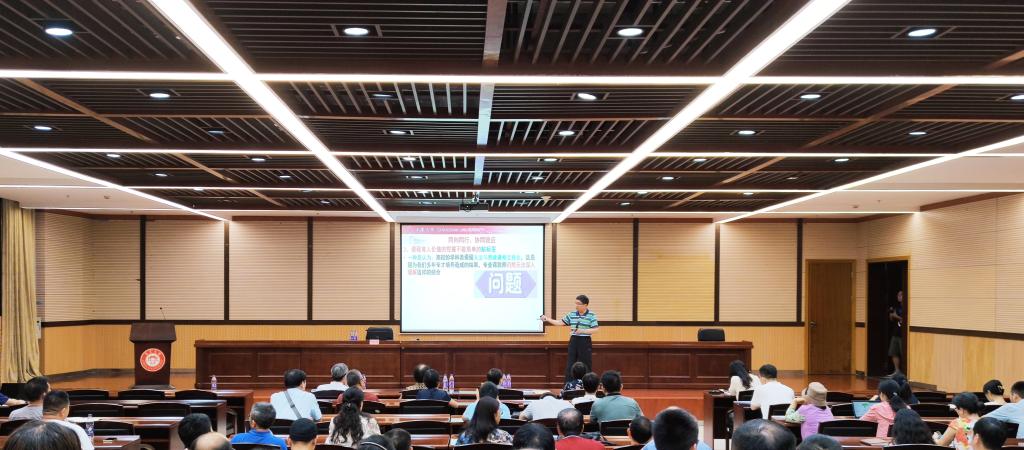 6月9日,我校举办“让课程思政‘活’起来——学科或专业课程思政之实践”报告会。本次会议特别邀请上海大学原副校长叶志明教授主讲,各二级学院书记、分管教学副院长,各职能部门主要负责人以及部分专任教师到场聆听。会议由副校长曹敏杰主持。