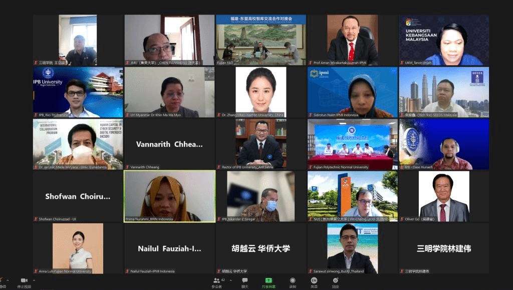 9月28日,福建-东盟高校智库交流合作对接会在线上召开,我省部分高校的专家学者、东盟国家高校的专家学者以及政府官员参会。我校水产学院陈天圣教授与我校邀请的外方参会代表、泰国东方大学海洋技术学院院长沙拉悟特教授,新加坡国立大学生物系主任刘益成副教授也参加会议。