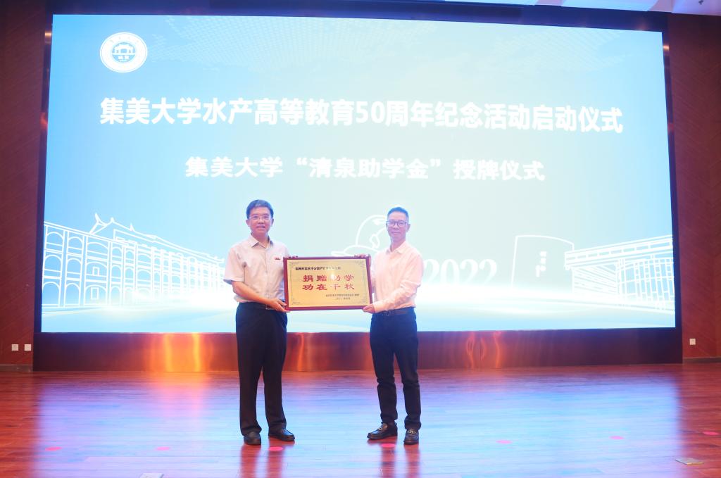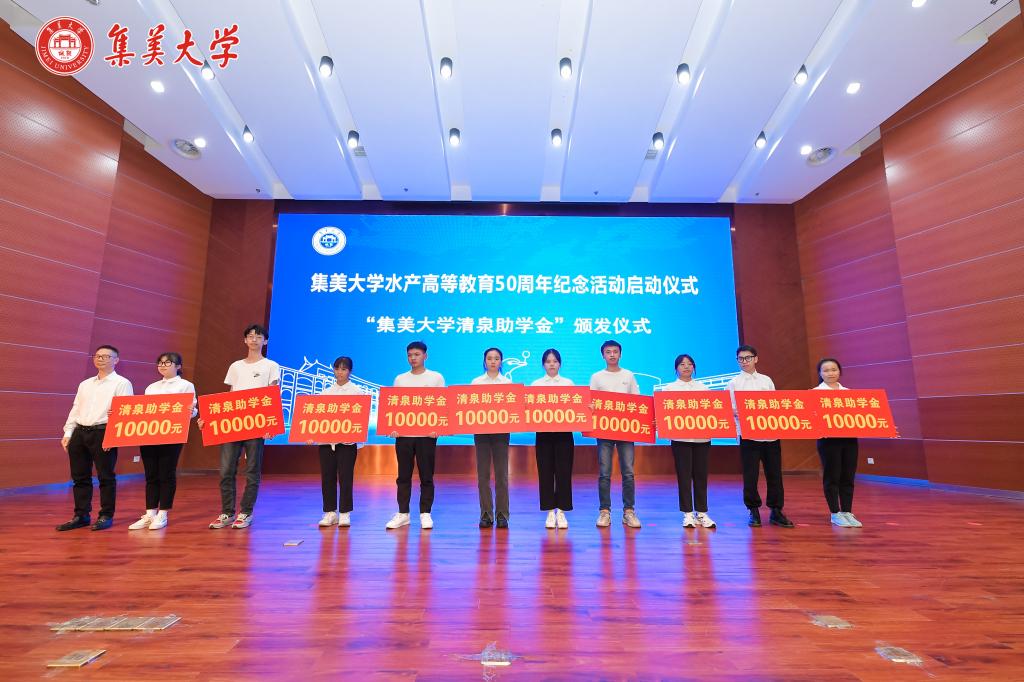 李清彪、李克与校友代表共同开启亚洲中文精品乱码水产高等教育50周年纪念活动启动按钮。随后,李清彪为陈金华校友颁发了捐赠牌匾,教师和校友代表为学生颁发了水产学院校友基金会“知农爱农”奖学金、“强农兴农”奖学金、“白海豚”助学金,海洋食品与生物工程学院“阿比德奖学金”,亚洲中文精品乱码“清泉助学金”。