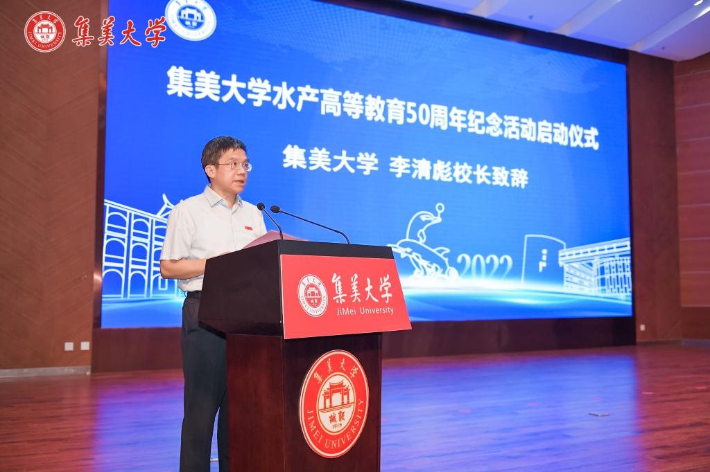 李清彪代表学校致辞。他在回顾了1972年建立厦门水产学院以来,学校水产高等教育的办学历史和办学成就后指出,开展水产高等教育50周年系列纪念活动,能更好总结水产高等教育的成果和经验,凝聚各界贤达和广大校友力量,共谋学校水产教育事业、学校事业发展,共同推进一流大学建设。他对学校水产教育提出三点希望:一是牢记总书记嘱托,坚持社会主义办学方向,为党育人,为国育才;二是大力弘扬嘉庚精神,凝聚合力,解放思想,推动学校事业发展;三是认真组织谋划,扎实推进纪念水产高等教育50周年各项工作,为水产高等教育史册添上浓墨一笔。