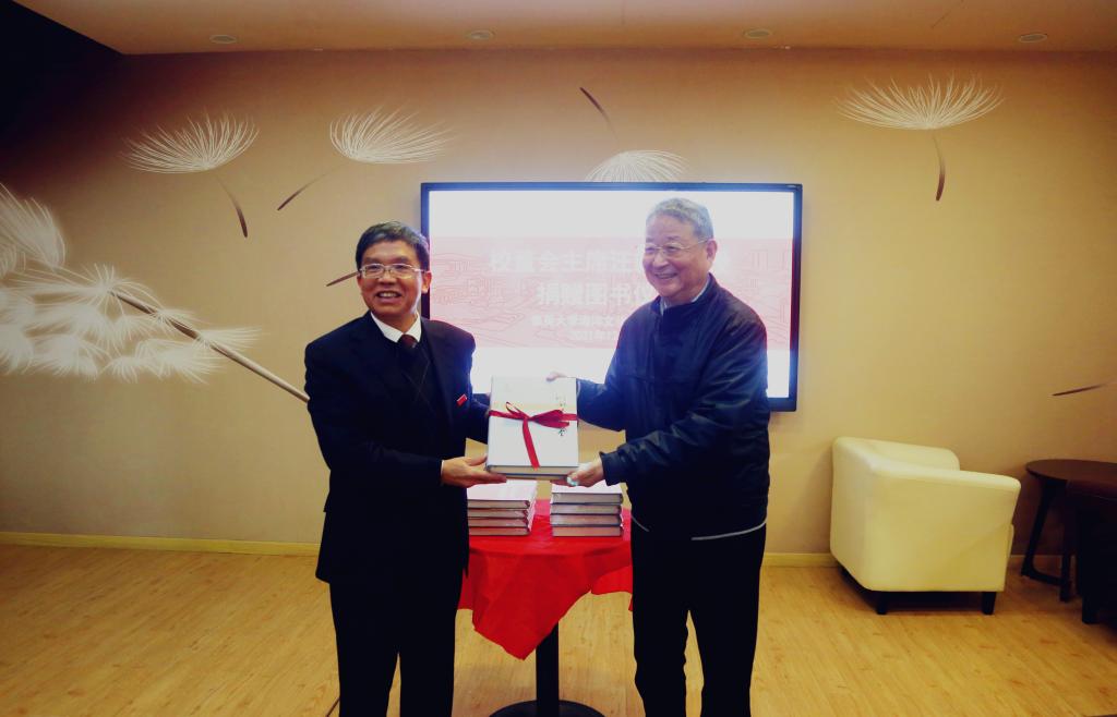会后,汪毅夫教授向学校捐赠由其担任学术顾问并参与编撰的重要研究成果——《闽南侨批大全第一辑》《闽南侨批大全第二辑》两套书籍,共30册,校长李清彪代表学校接受捐赠。