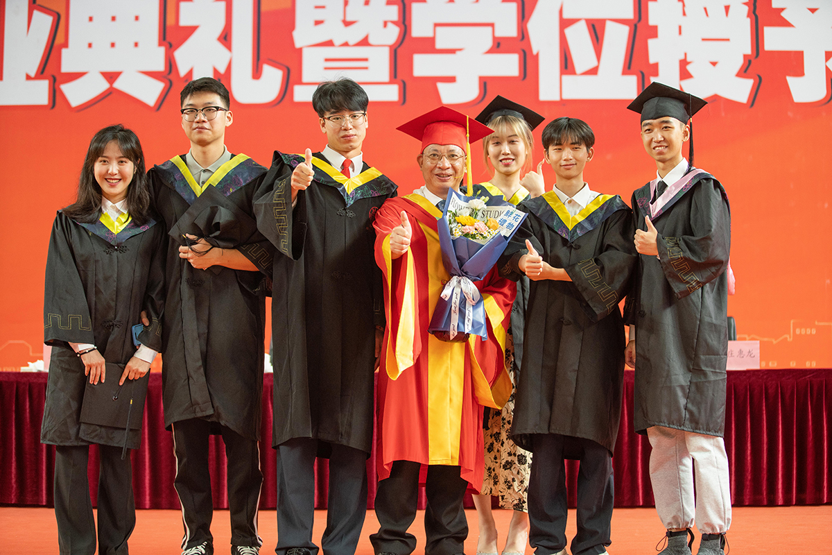 在学位授予仪式上,全体校领导、校学位评定委员会委员、学院领导为全体毕业生拨正流苏,颁发学位证书并合影留念。