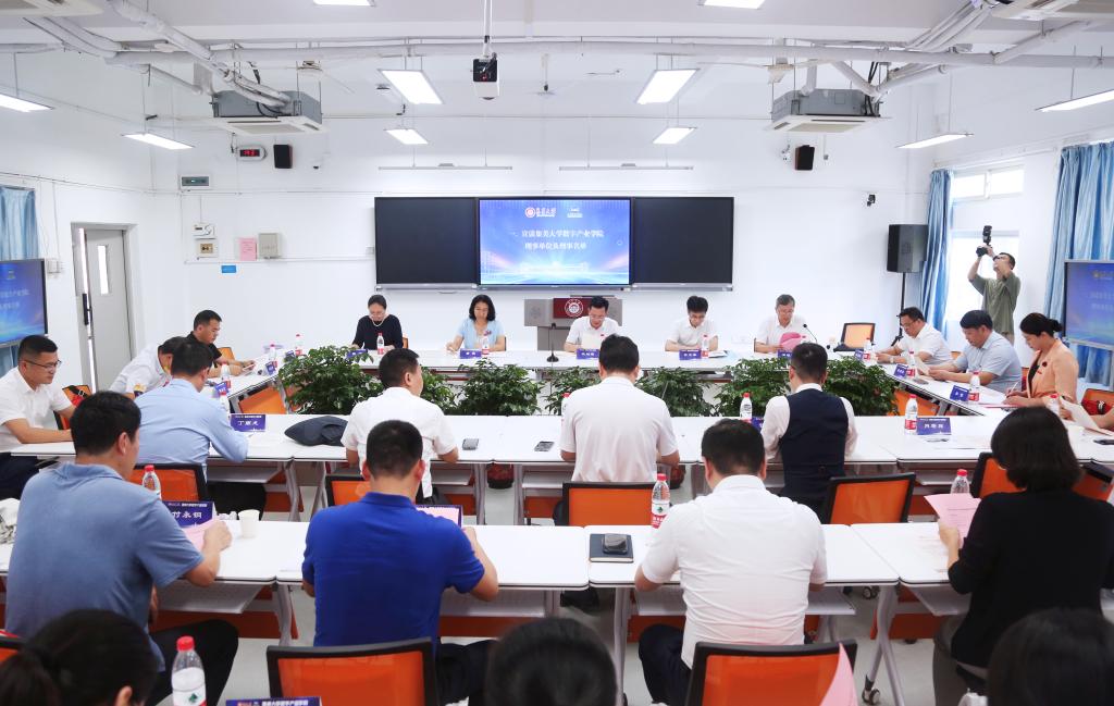 参加揭牌仪式的还有同安区发改局等政府机构代表,厦门信息集团、厦门科技产业化集团、德韬(北京)控股集团有限公司、艾伟森国际有限公司代表及学校相关单位负责人,校友、师生代表。当日还召开了数字产业学院理事会议及数字经济专业本科培养方案研讨会。