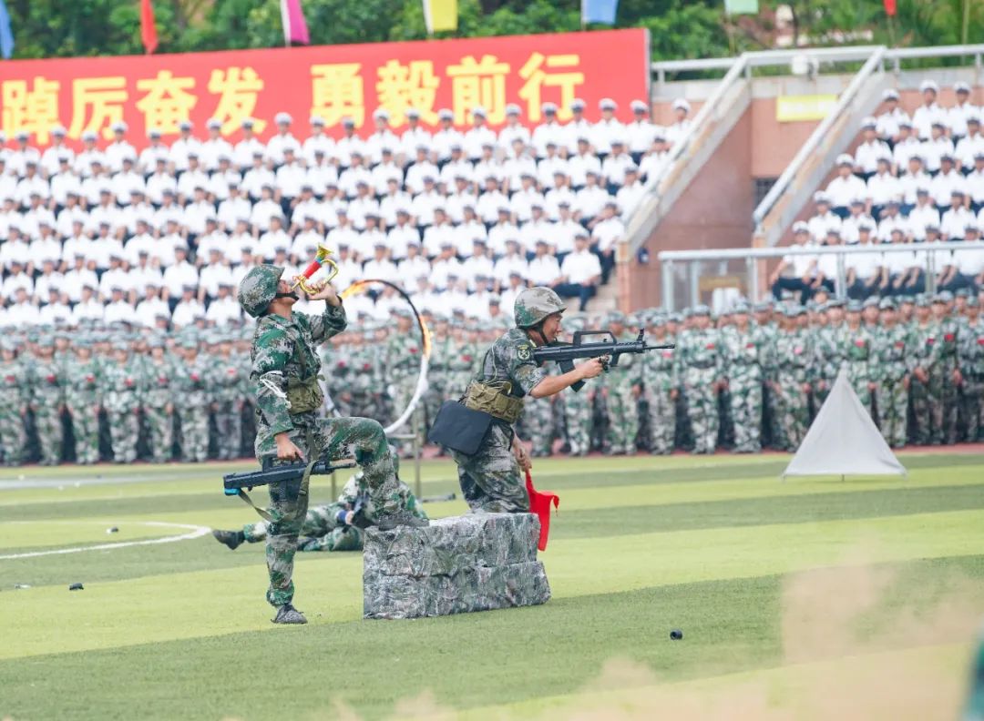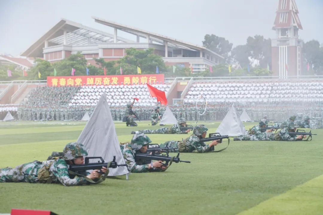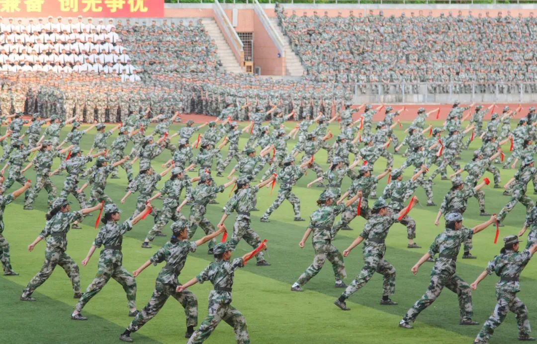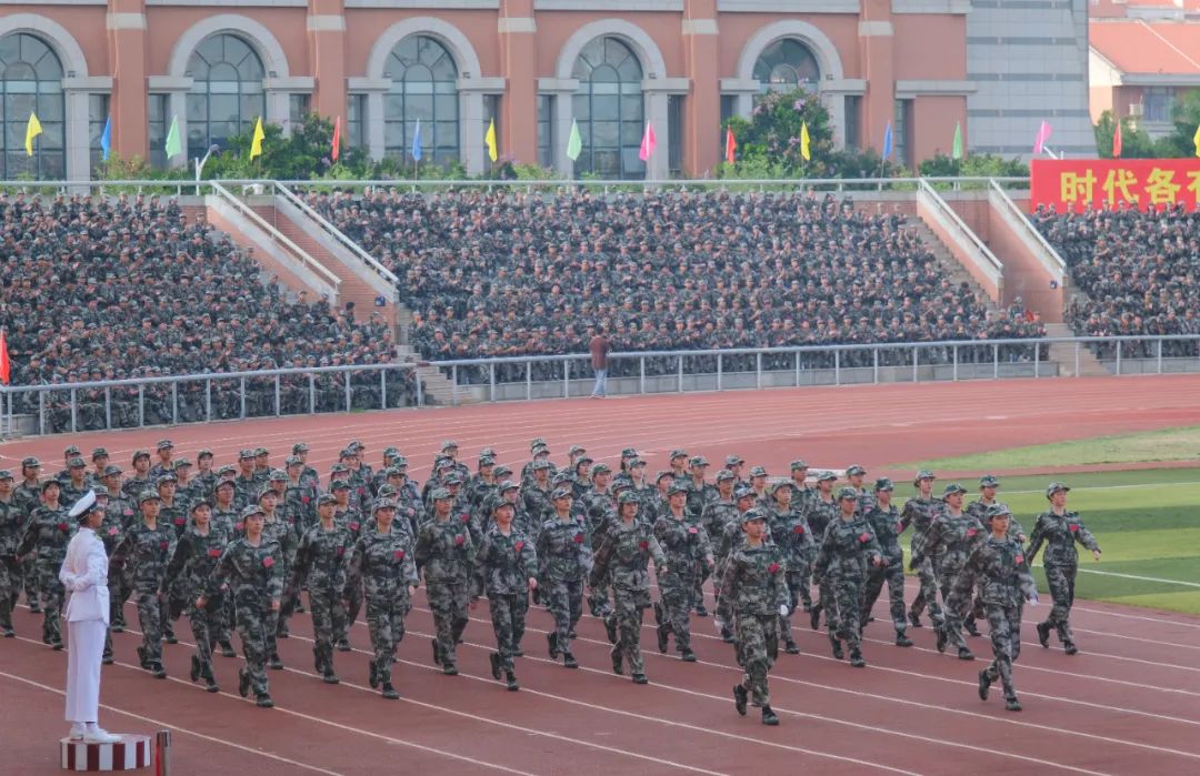 9月16日下午,庄重文夫人体育场风烟俱净,喊声震天,2022级新生军训成果汇报暨总结表彰大会超燃上演。