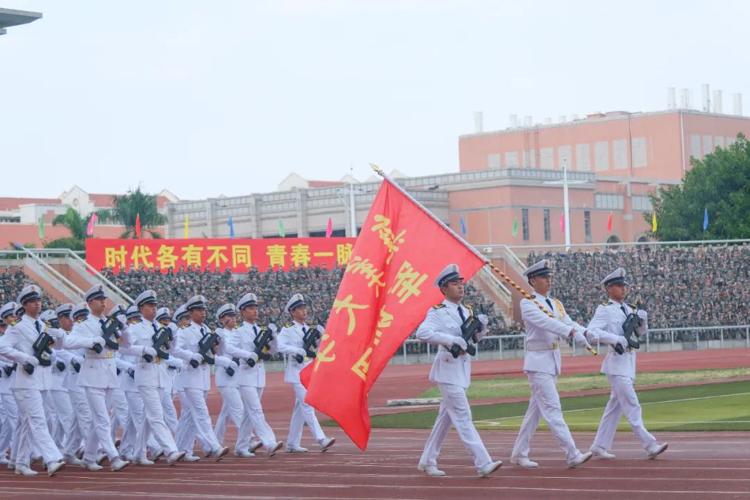 大会在雄壮的国歌中拉开序幕。来自各学院的新生方阵以饱满的热情、整齐的步伐和豪迈的气魄健步走过主席台接受检阅。
