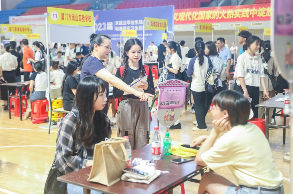 双选会现场还专设“就业政策咨询处”“返校求职毕业生服务处”等窗口,由校院就业指导老师、厦门市人社部门专家等现场为毕业生提供一对一个性化咨询和指导。