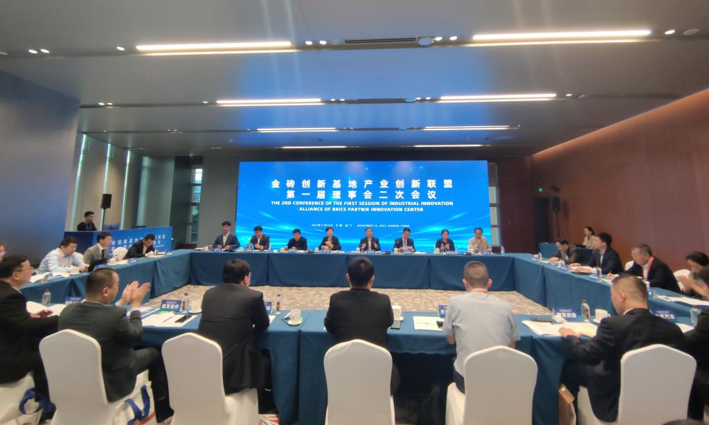 金砖创新基地产业创新联盟第一届理事会二次会议于11月16日在厦门国际会议中心召开,联盟理事长、中国通用技术集团总经理陆益民,副理事长兼秘书长、工业和信息化部国际经济技术合作中心主任郑红,厦门金砖创新基地副主任洪亮等出席会议,会议由金砖创新基地产业创新联盟执行秘书长、通用技术集团国际控股有限公司党委书记、董事长康虎彪主持。副校长于洪亮代表学校出席联盟会议。