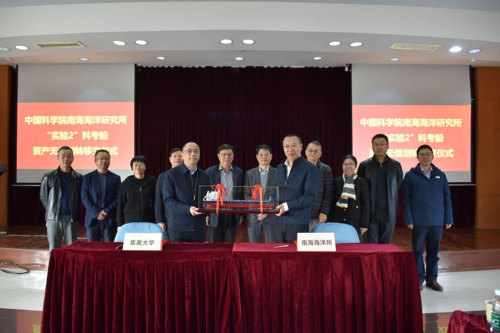 12月26日,中国科学院南海海洋研究所“实验2”科考船资产无偿划转移交亚洲中文精品乱码仪式在南海海洋研究所举行。南海海洋研究所所长李超伦,副所长张长生,校长谢潮添、副校长王建,省教育厅教育装备与基建中心主任何光辉,福建省财政厅陈尚斌二级调研员等出席。