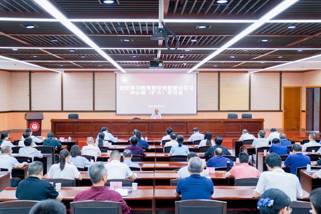 5月24日下午,我校召开党纪学习教育暨校党委理论学习中心组(扩大)学习会。会议邀请中共党史学会副会长、原中共中央党史研究室副主任李忠杰教授作专题辅导报告。校党委理论学习中心组成员,校纪委委员,机关部处、教辅机构及各学院副处级及以上干部参会。会议由校党委书记沈灿煌主持。
