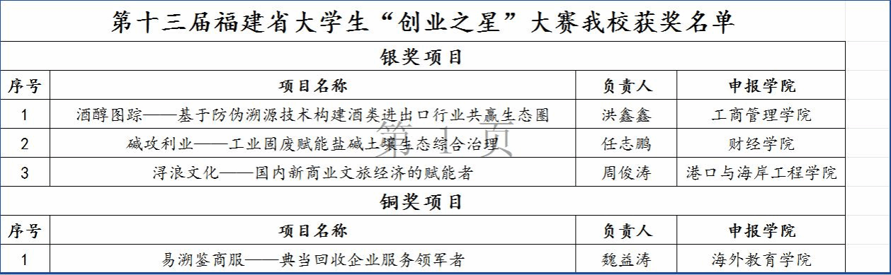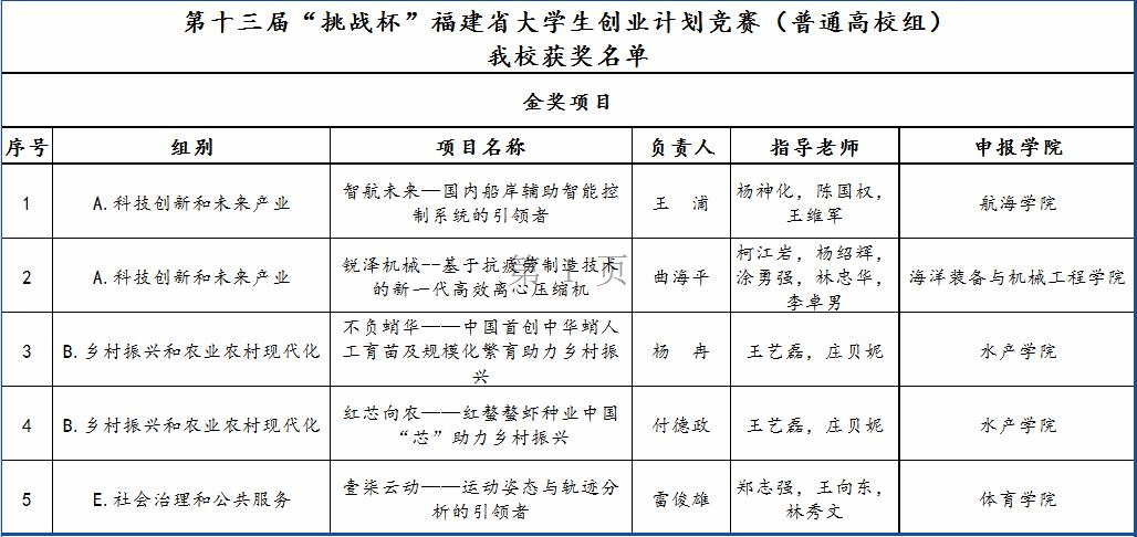 近日,第十三届“挑战杯”福建省大学生创业计划竞赛暨福建省大学生“创业之星”大赛在嘉庚学院落幕。我校获“挑战杯”金奖5项、银奖3项、铜奖6项的佳绩,金奖数量再次位列全省第一。同时,还获得“台湾创业青年专项评比”优秀项目4项,“创业之星”大赛银奖3项、铜奖1项。