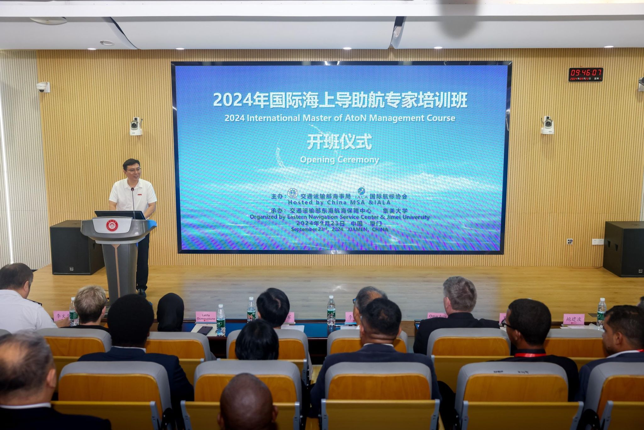 9月23日上午,2024年国际海上导助航专家培训班开班仪式在我校举行。交通运输部海事局副局长李宏印、东海航海保障中心党委书记汪志军、国际航标组织副秘书长兼环球学院院长Omar Frits Eriksson,副校长王建,东海航海保障中心、学校相关单位负责人等出席仪式。来自埃及、印度尼西亚、喀麦隆、马来西亚、新加坡、索马里、泰国等14个国家和地区的21位海事高级官员参加培训。