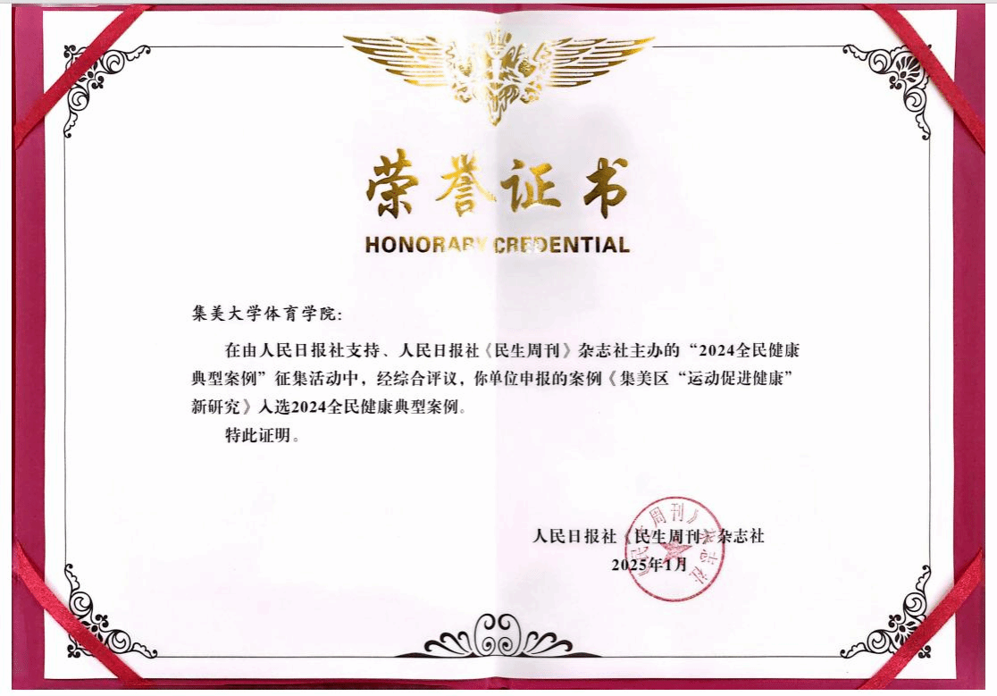 近日,2024全民健康论坛组委会发布“2024全民健康典型案例宣传展示活动”第三批入选案例,我校体育学院报送的案例《集美区“运动促健康”新研究》入选。