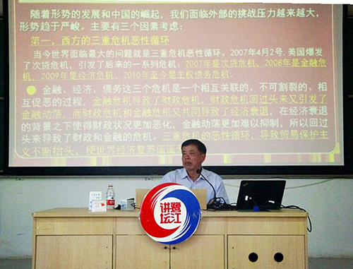 讲座中,邹文勇从今年“两会”召开的时代背景和独特意义、政府工作报告的架构和亮点和2017年经济工作的重点内容与发展思路三个方面,全面讲解了全国“两会”概况;结合国内外发展形势,生动地阐述了学习“两会”精神的重要意义和深刻内涵。邹文勇指出,当下我党的工作重心在于坚持以人民为中心的发展思想、推进供给侧结构性改革、加强宏观调控、深化经济体制改革,践行五大发展理念,促进军民深入融合。