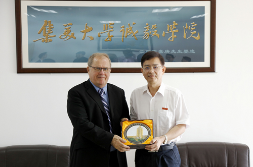 5月8日,英国林肯大学(University of Lincoln)国际商学院合作事务处主任Prof.Ian Barnes、林肯大学中国代表处主任陈海兰等一行来我校诚毅学院交流访问。诚毅学院院长叶光煌在景祺楼18楼会议室会见了来访客人并与客人座谈交流。
