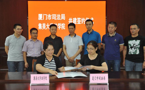 10月17日下午,法学院与厦门市司法局在市司法局八楼会议室举行司法社工人才培养合作共建签约仪式,市司法局副局长贺菊英、法学院副院长许翠霞共同签署了合作共建协议。市司法局社区矫正管理处处长林辉亮,法学院副院长邓玮、社会学系和法律系有关负责人等参加了签约仪式。