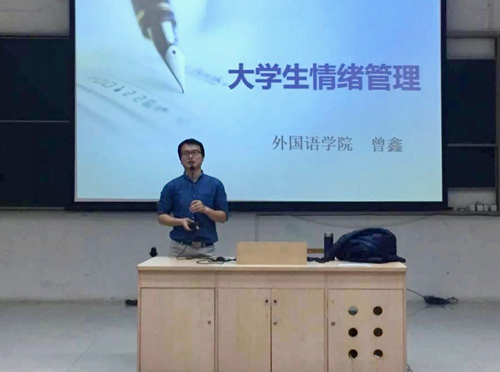 12月3日晚,外国语学院举办“大学生情绪管理”讲座。本次讲座由学院心理健康协会指导老师曾鑫主讲。17级全体新生聆听了讲座。