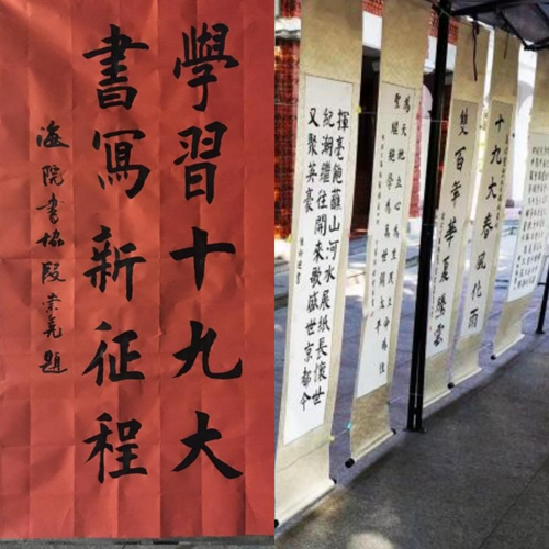 本次主题书画比赛以党的十九大为主题,吸引了40多名同学报名参赛, 同学们用自己创作的作品歌颂伟大的祖国,描绘“海洋强国”的梦想,其中软笔书法7幅、硬笔书法25幅、绘画作品8幅、篆刻作品3幅等。我校书协和诚毅墨缘两个社团的25幅优秀作品也应邀参加此次书画作品展。