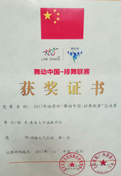 近日,我校诚毅学院排舞队以10204最高票获2017年福摩杯“舞动中国-排舞联赛”总决赛网络人气票选第一名。