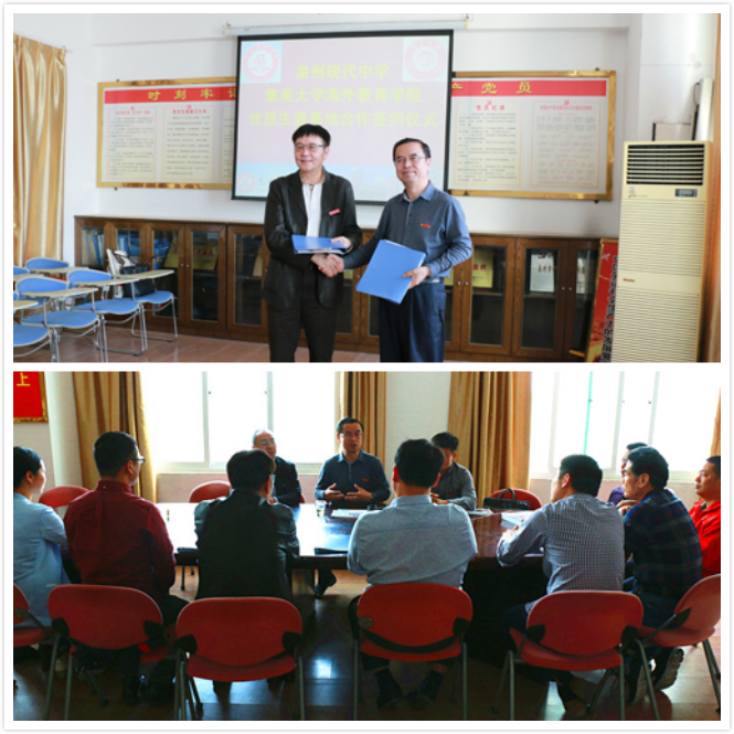 4月17日,我校陈爱礼国际学院(海外教育学院)与泉州现代中学签订优质生源基地合作协议。双方领导和有关人员参加签约仪式,并就人才培养的衔接与合作进行深入的探讨和交流。