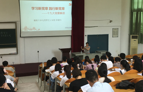 讲座中,李晋玲从“党的十九大修改党章的背景和过程、十九大党章新在何处和十九大党章怎么学”三个方面解读了新党章。讲座条理清晰、生动具体,把“四个自信”“五位一体”总体布局、“八个明确”和“十四个坚持”贯穿其中,使学院广大学生党员进一步深入学习了新党章的内容,重温党的历史。