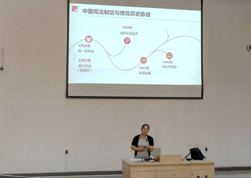 6月12日下午,法学院副院长许翠霞为法学16级全体学生作题为“学习宪法 尊崇宪法——弘扬宪法精神”的专题报告,以大力弘扬宪法精神,普及宪法知识,营造学习宪法、尊崇宪法的良好氛围。