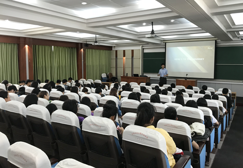 10月24日下午,万豪集团大中华区院校关系经理朱程(Kenneth)一行来工商管理学院,为学院旅游管理专业毕业班学生进行万豪集团“启航者”管理培训生项目宣讲。