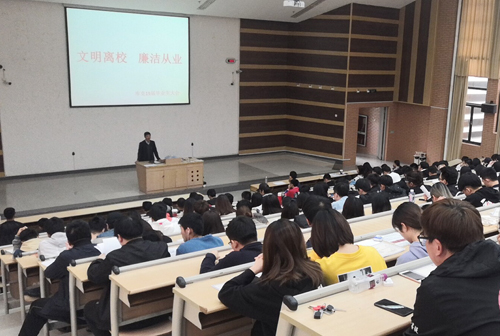近日,海外教育学院党委副书记卢其乐以“文明离校 廉洁从业”为主题,对中美库克项目2019届毕业生进行离校教育。