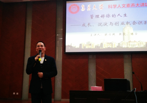 4月3日晚,工商管理学院林必越教授在尚大楼105报告厅为我校师生做题为“管理好你的人生——成长、沉淀与创业机会识别”的专场讲座。全校500多名师生聆听了讲座。