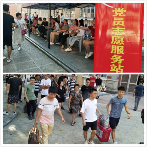 “有困难,找党员”。在学院新生咨询点、报到注册点、绿色通道区、家长休息区,学院在岗学生党员佩戴党徽,亮出党员身份,认真地指引前来报到的新生,耐心地解答新生和家长的疑问,帮助新生搬运行李,为新生和家长提供了高效、便捷、热情的一站式服务。